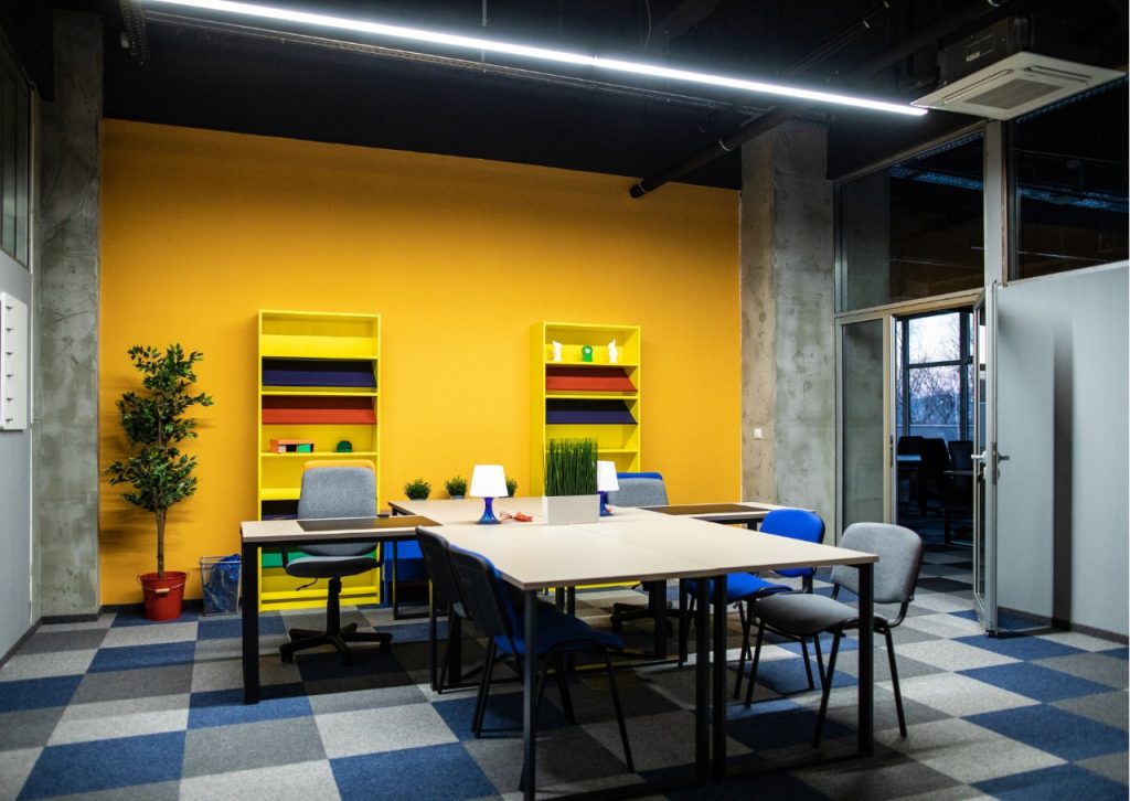 Warna tersebut juga bisa disesuaikan dengan identitas perusahaan atau branding perusahaan kamu, misalnya brand kamu dikenal dengan warna kuning, kamu bisa menerapkan warna cat dinding dengan dominasi warna kuning.