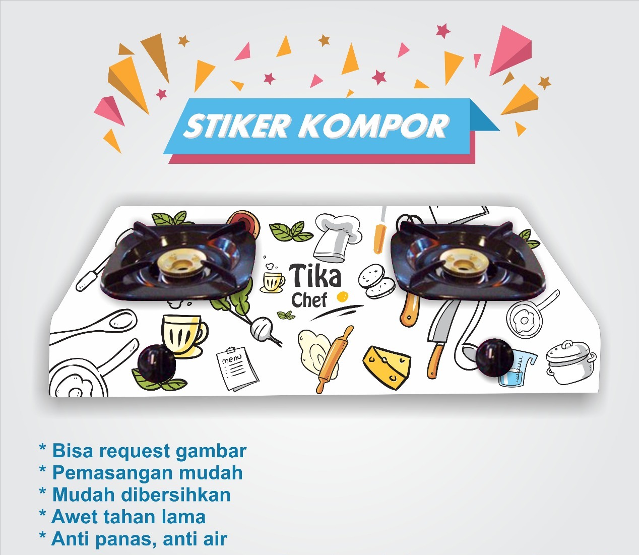 Kamu bisa menempelkan stiker untuk kompor kamu.
