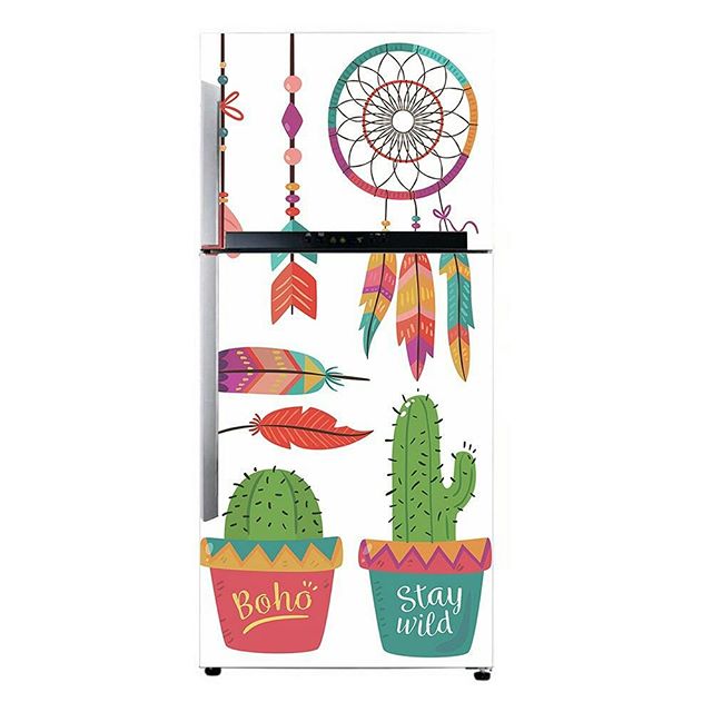 Banyak motif-motif desain stiker yang kamu bisa pakai di kulkas polos kamu.